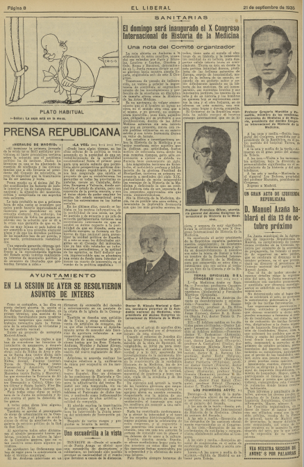 En El Liberal se publicó una nota del comité organizador del congreso y se insertaron las fotografías de los tres principales representantes de ese comité: su presidente #GregorioMarañón, su vicepresidente #NicasioMariscal y el secretario general #FranciscoOliver.