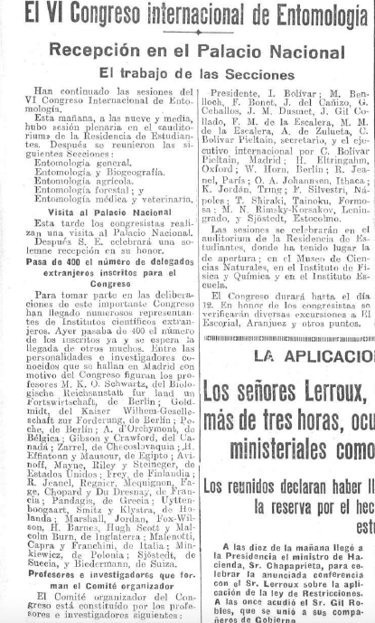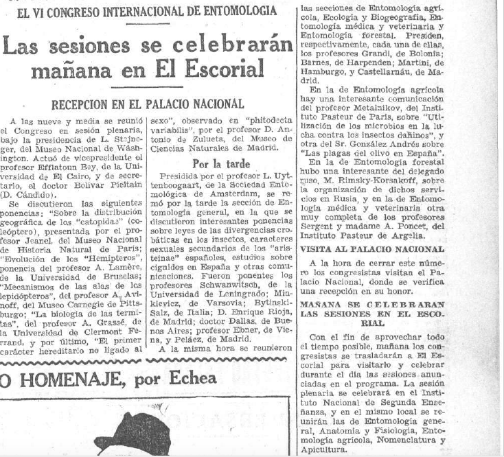 - noticias varias relacionadas con la inauguración y el desarrollo de las primeras sesiones del #VICongresoInternacionaldeEntomología que se celebraba en Madrid.
