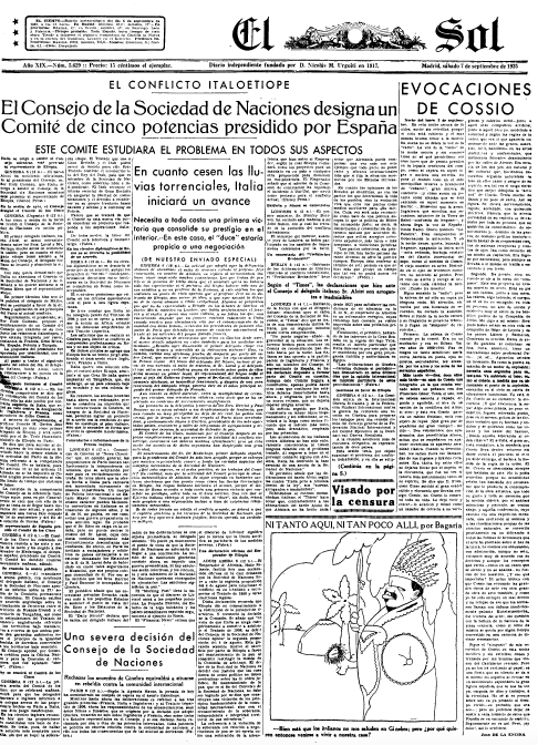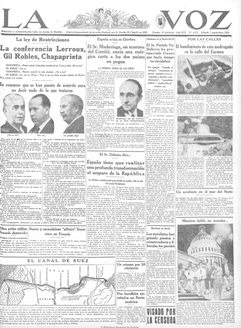 Se presentan las portadas de cinco diarios republicanos de Madrid: tres matutinos, Ahora, El Sol y La Libertad y dos vespertinos, El Heraldo de Madrid y La Voz. En ellas cabe destacar el artículo dedicado a #ManuelBartoloméCossío por el crítico de arte del diario El Sol #JuandelaEncina.