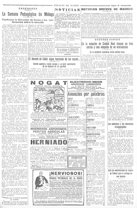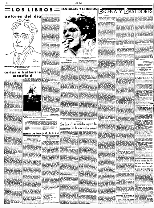 - Tanto El Sol, en cuya segunda página también había noticias sobre la actualidad literaria con una colaboración de #CarmenConde (1907-1996), como El Heraldo de Madrid continuaban prestando atención al desarrollo de la #SemanaPedagógica que se celebraba en Málaga dedicada, entre otras cuestiones, a analizar la situación de las escuelas rurales.