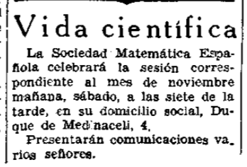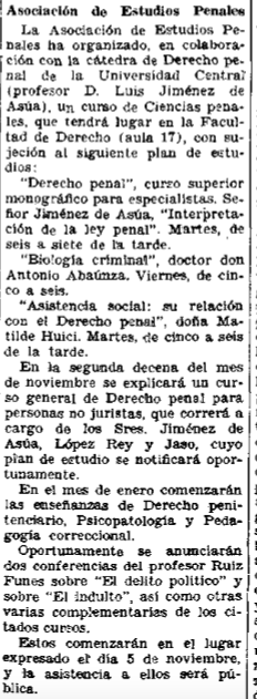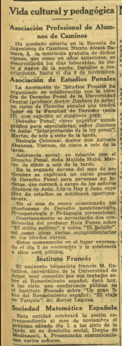 - las informaciones sobre la labor de diversas sociedades y asociaciones científicas, fuesen matemáticos o penalistas, como hizo el diario El Sol.