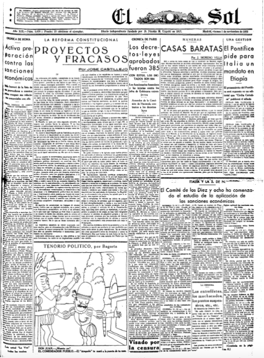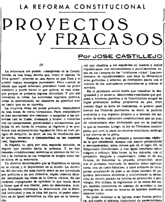 Por su parte #JoseCastillejo en la primera página de El Sol continuó su serie de escritos en los que hacia un balance crítico de la aplicación de la Constitución de 1931.