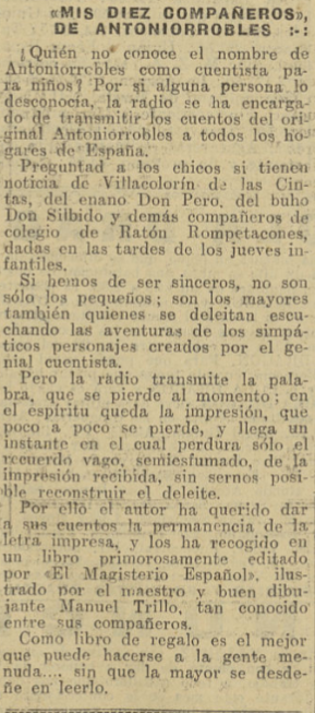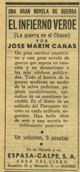 En el campo de la cultura destaco en primer lugar noticias sobre dos libros: el anuncio hecho por Ahora de la novela El infierno verde del escritor costarricense #JoseMarinCañaspor que era una crónica novelada de la guerra entre #Bolivia y #Paraguay por el control de la región del Chaco; y la interesante presentación efectuada por El Liberal de Mis diez compañeros una singular obra de ese gran escritor de literatura infantil que fue #Antoniorrobles y en el que recogió sus colaboraciones semanales que tenía en las ondas de #UniónRadio dedicadas al público infantil los jueves por la tarde.