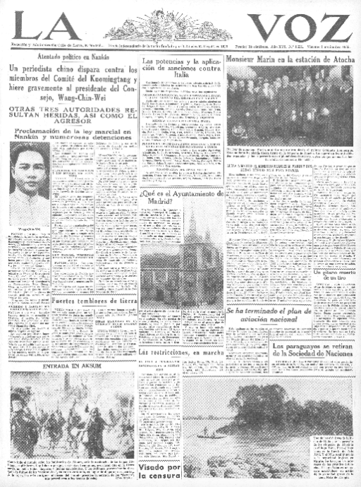 Al iniciarse aquel mes de noviembre la situación internacional era inquietante, como lo manifestó el editorialista de Ahora.