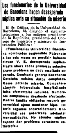 Dos diarios que eran portavoces de la oposición más contundente a la labor del bloque gubernamental que agrupaba a varias fuerzas conservadoras y del republicanismo centrista, como fue el caso de Heraldo de Madrid y La Libertad, denunciaron los problemas existentes entre el funcionariado de la Universidad de Barcelona y en el personal subalterno de los Institutos Nacionales de Enseñanza Media.