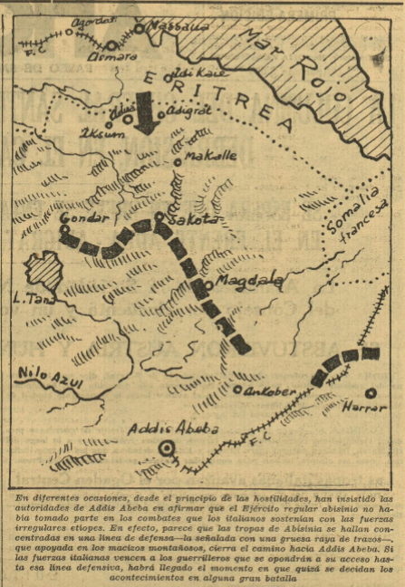 La guerra de Abisinia, seguida día a día, favorecía el despliegue de conocimientos geográficos sobre ese país africano, como lo revelan estos mapas en los diarios Ahora y El Liberal.