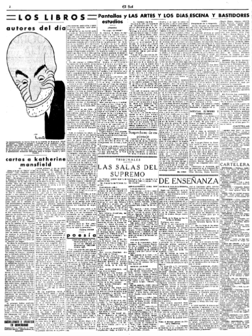 El Sol ofreció numerosas y variadas informaciones, noticias y reseñas sobre diferentes aspectos del mundo cultural.