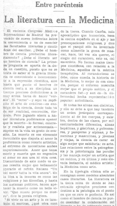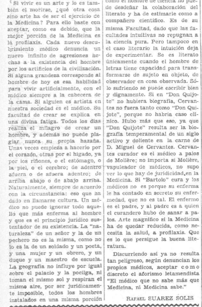 El diario vespertino La Voz insertó un artículo del periodista asturiano #RafaelSuarezSolis, hijo de medico, en el que reflexionaba sobre las relaciones entre #medicina y #literatura, al hilo de la reciente clausura del décimo #congresointernacional de #historiadelamedicina celebrado en #Madrid.