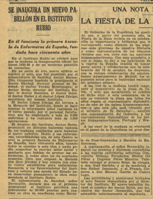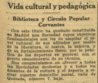 En el terreno de la educación Ahora dio cobertura a las actividades de la #Asociación Universitaria #Femenina y la #Biblioteca y círculo popular Cervantes y El Sol se hizo eco de la gran demanda de libros en la biblioteca circulante del Ayuntamiento de Madrid y de la celebración de la "Fiesta de la Raza" en las escuelas de Madrid.