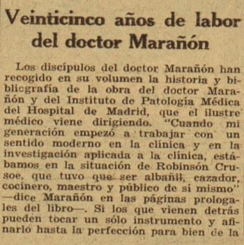 Ahora en su sección de crítica literaria se hizo eco del libro que glosaba los 25 años de actividad científica de #GregorioMarañón.
