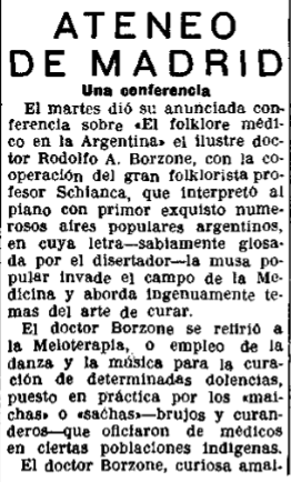 También Ahora y La Libertad dieron cobertura a dos conferencias que impartió en diversos lugares de #Madrid como la Sociedad Española de #Higiene y el #Ateneo el medico argentino doctor #RodolfoBorzone, catedrático de la Facultad de Medicina de Rosario sobre dos temas muy diferentes. Este conferenciante fue uno de los participantes en el X #Congresointernacionald de #historiadelamedicina.