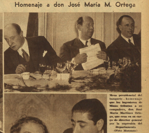 En el mundo de las técnicas y de las ingenierías Ahora se informó del homenaje al #ingeniero de #minas #JoséMariaMartinezOrtega al suprimirse la Dirección General de Minas por la aplicación de la ley de Restricciones, impulsada por el primer ministro Chapaprieta. Ese ingeniero de minas era el padre del futuro marqués de Villaverde Cristóbal Martinez-Bordiu Ortega.
