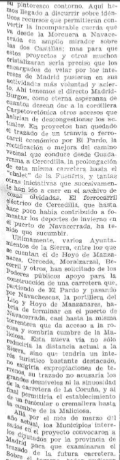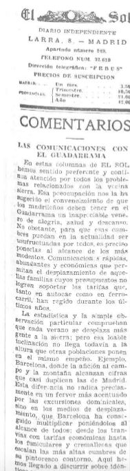 En el mundo de las técnicas y de las comunicaciones cabe resaltar el editorial dedicado por El Sol a exponer un plan que facilitase las conexiones de #Madrid con la sierra de Guadarrama, lugar natural de esparcimiento de la población madrileña.
