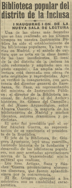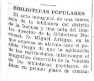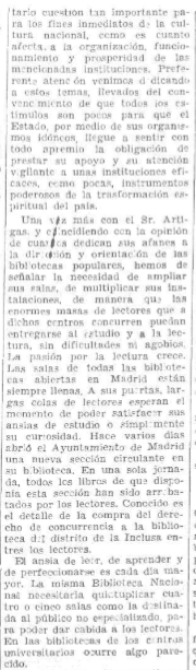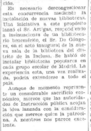 En el campo cultural sobresale el interés de los diarios El Liberal y El Sol, que le dedicó un editorial, a la promoción de las bibliotecas populares.