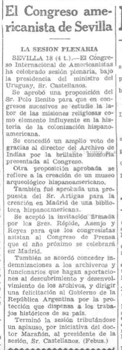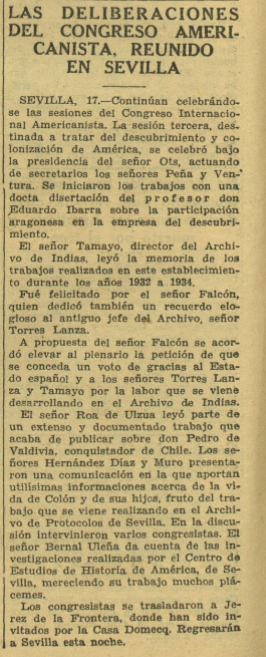 Respecto a las ciencias humanas y sociales cabe señalar que tanto Ahora como La Voz dieron cobertura al #congresointernacional de americanistas que se estaba celebrando en #Sevilla.