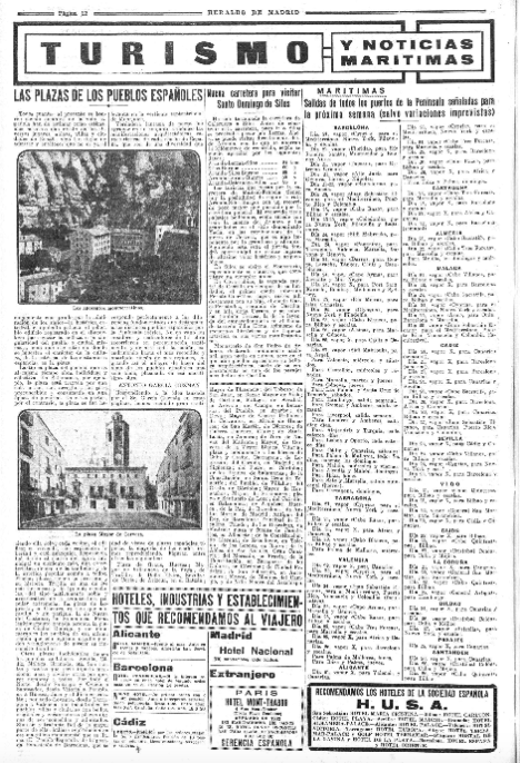 Y Heraldo de Madrid usó su hoja dedicada a promover el #turismo y las comunicaciones marítimas a difundir conocimientos geográficos del territorio español fuesen parajes de la provincia de #Burgos o diversas plazas populares esparcidas por diversos lugares.