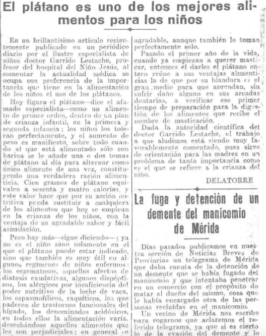 Por su parte un colaborador de Heraldo de Madrid resumió un trabajo del pediatra infantil #JuanGarridoLestache que exponía la importancia de incluir el consumo del plátano en la dieta de los niños.
