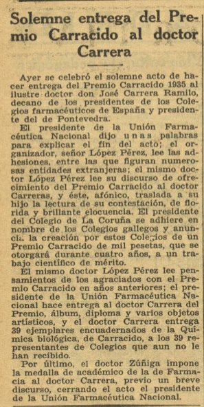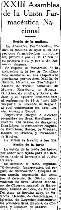 También Ahora y El Sol dieron amplia cobertura al desarrollo de la XIII Asamblea de la Unión Farmacéutica Nacional, donde se concedió el premio Carracido a #JoseCarreraRamilo, decano de los presidentes de los Colegios farmacéuticos de España y presidente del de Pontevedra.