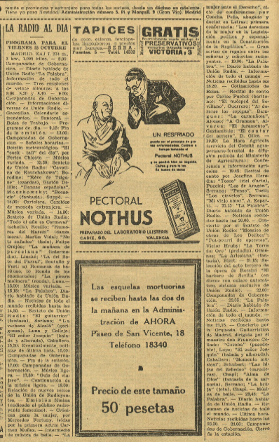 Casi todos los diarios ofrecían la programación de Unión Radio. En aquel día se inauguraba a partir de las seis de la tarde un ciclo de conferencias que daría la abogada y doctora en Letras #ConchaPeña. Su primera conferencia tenía como título "Los derechos de la mujer en la Legislación política y especialmente en la Constitución de la República". Luego a las 19,30 se emitiría el habitual programa "La hora agrícola", como consta en estos anuncios de Ahora y El Liberal.