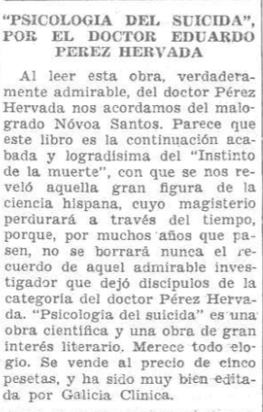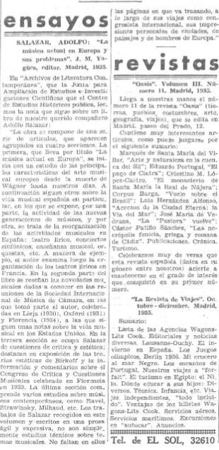 Así se constata con algunas de las noticias que podemos leer en El Sol, cuyos redactores eran lectores de la excelente revista Indice Literario.Archivos de Literatura Contemporánea que dirigía Pedro Salinas y editaba el Centro de Estudios Históricos de la #JAE al hacerse eco de una reseña aparecida en ella del último libro del crítico musical de El Sol #AdolfoSalazar, o en La Voz donde apareció una reseña del libro Psicología del suicida del doctor Eduardo Pérez Hervada (Coruña 1902-1996).