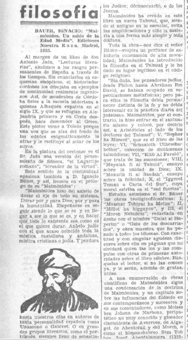 la página de El Sol dedicada a los libros donde se insertaba una reseña de M. sobre el libro #IgnacioBauer acerca de #Maimónides.