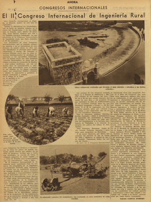 Respecto a las cuestiones técnicas lo más relevante fue el artículo en el diario Ahora de #AntonioGarcíaRomero sobre el #IICongresoInternacionaldeIngenieríaRural que se iba a celebrar en Madrid. Ese mismo periódico continuó con los reportajes de #EduardoZamacois sobre la vida en los trenes y también informó de la llegada a #NuevaYork del aviador #RamónFranco que iba a ocupar el cargo de agregado aeronáutico en la embajada española en #Washington en #EstadosUnidos y que enseguida se le pidió regresar a Madrid, según informó la prensa del día siguiente.