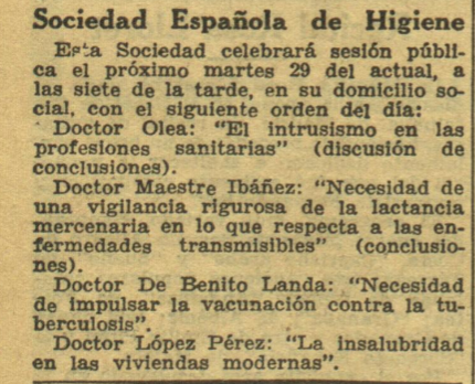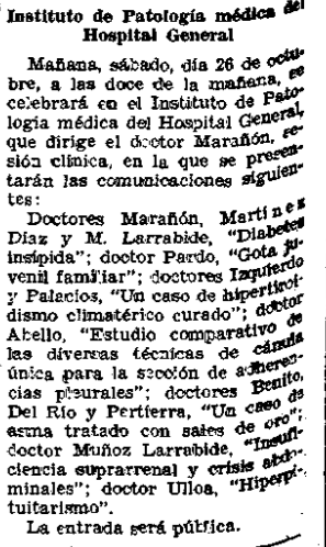 Tanto Ahora como El Sol dieron cobertura al activo movimiento asociativo de los médicos españoles, particularmente madrileños, informando de las actividades de la Sociedad Española de #Higiene, de la Sociedad de #Neurología y #Psiquiatría y del Instituto de #Patología Médica que dirigía #GregorioMarañón en el #Hospital General de #Madrid.