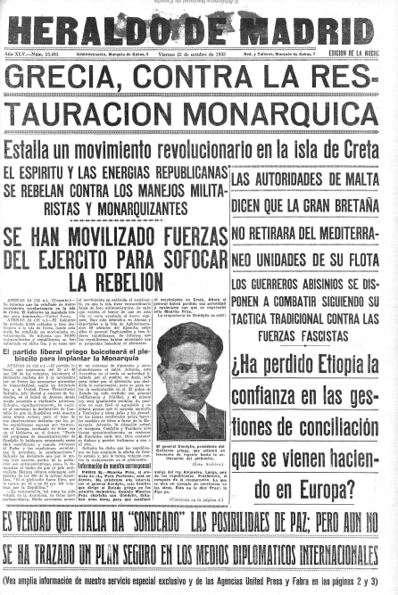 Respecto a las ciencias del espacio Ahora ofreció un reportaje sobre los efectos de un reciente ciclón en #Cuba en el que se ofrecían noticias sobre los estudios realizados sobre la meteorología de esa isla antillana y El Liberal insertó un mapa de #Etiopia, donde seguían desarrollándose combates bélicos entre tropas italianas y etíopes. Y Heraldo de Madrid en su hoja titulada "Turismo y noticias marítimas" dedicó un breve artículo a #Tetuán, la capital del protectorado español en el norte de Marruecos.