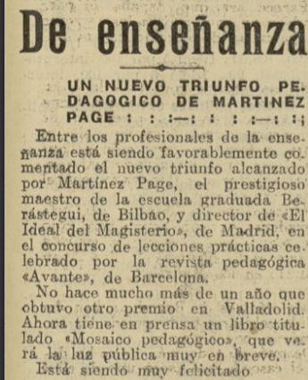 Por su parte Ahora dio publicidad a un acto organizado por la Federación Universitaria Hispano Americana y El Liberal se congratuló del premio recibido por el maestro #MartinezPage, director de la revista El Ideal del Magisterio