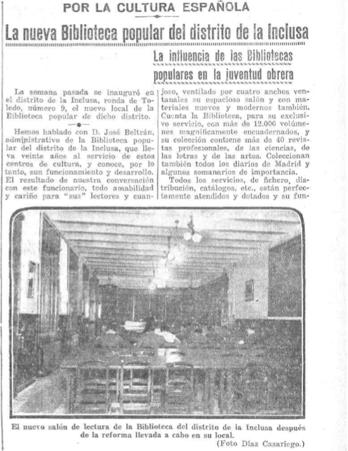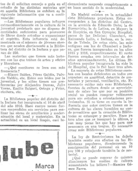Finalmente cabe llamar la atención sobre la creciente presencia de alusiones a la #culturaobrera. Dos referencias hubo en los periódicos de aquel día seleccionados. Una fue un articulo del periodista #RamiroGomezZurro, vinculado a la UGT y luego al PSOE, y publicado en Heraldo de Madrid sobre la importancia de las bibliotecas populares para fortalecer la cultura de la juventud obrera. El otro fue un aviso de La Voz, comunicando el retraso en su salida del periódico quincenal Línea, que aglutinaría a un elenco de escritores comprometidos con las tareas culturales del movimiento obrero.