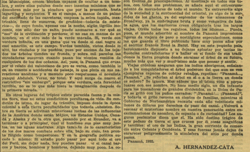 Como indicio de las conexiones culturales con la América latina cabe situar un artículo aparecido en las página de Ahora del escritor cubano #AlfonsoHernándezCatá , residente entonces en #Panamá sobre ese país centroamericano.
