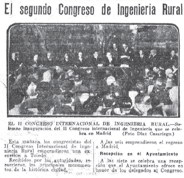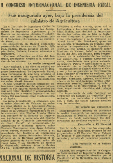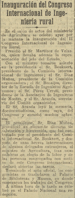 El secretario del Comité español de la Comisión internacional de #ingenieríarural y profesor de la #EscueladeIngenierosAgrónomos #EladioArandaHeredia, figura destacada en el desarrollo de ese congreso, también intervino en el programa de radiodifusión de ese día de #UniónRadio "La hora agrícola", emitido a las 19,30 horas, y que organizaba el Servicio del comité agropecuario forestal de difusión radiada del ministerio de #Agricultura. Su alocución versó sobre "Máquinas para siembra".