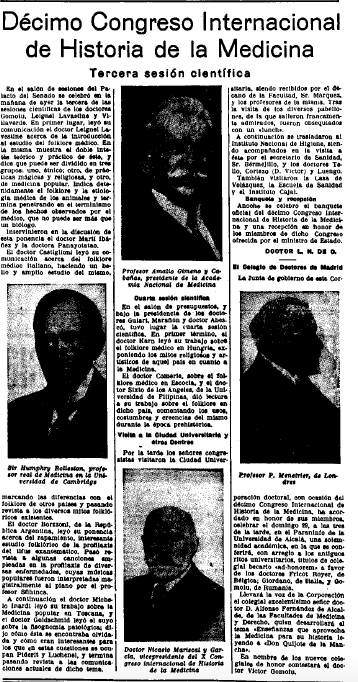 En el ámbito científico cabe destacar que todos los periódicos informaron del desarrollo de las sesiones del X #Congresointernacional de #historiadelamedicina y de otros asuntos relacionados con esa asamblea científica. Así Heraldo de Madrid se interesó por recoger opiniones del secretario del congreso, el Dr. #Oliver, sobre el funcionamiento de la Sociedad internacional de historiadores de la medicina.