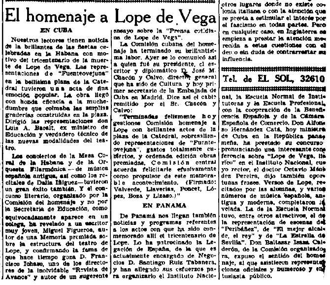 El Sol en su página cultural dedicó una amplia reseña al libro Lo admirable de Santander editado por Luis Santos y Cía, de Bilbao, que tenía abundantes fotografías de esa provincia cántabra. También ese diario dio cobertura a actos celebrados en #Cuba y #Panamá en el homenaje que se estaba haciendo a #LopedeVega en diversas partes del mundo.