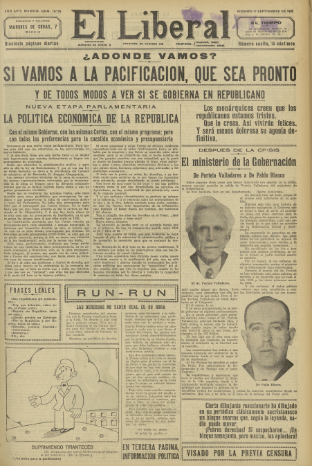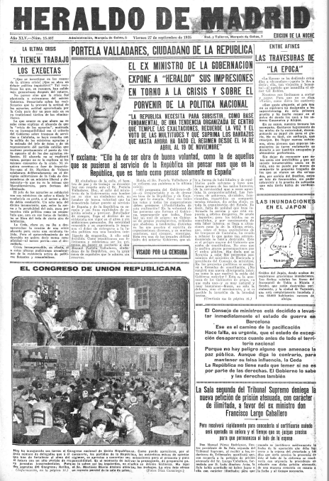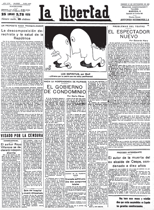 Se presentan a continuación las portadas correspondientes a ese día de seis periódicos madrileños.